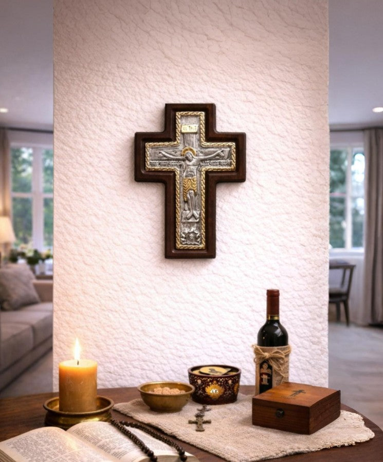Ο Άγιος Σταυρός της Σταύρωσης είναι ένα μοναδικό ιερό έργο τέχνης που αποπνέει ευλάβεια και πνευματική δύναμη. Ο ασημένιος σταυρός ευλογίας, με τοπικά επιχρυσώματα και ξύλινο πλαίσιο, απεικονίζει την Σταύρωση του Ιησού Χριστού, μία από τις σημαντικότερες σκηνές του Δωδεκαόρτου της Ορθόδοξης Εκκλησίας.