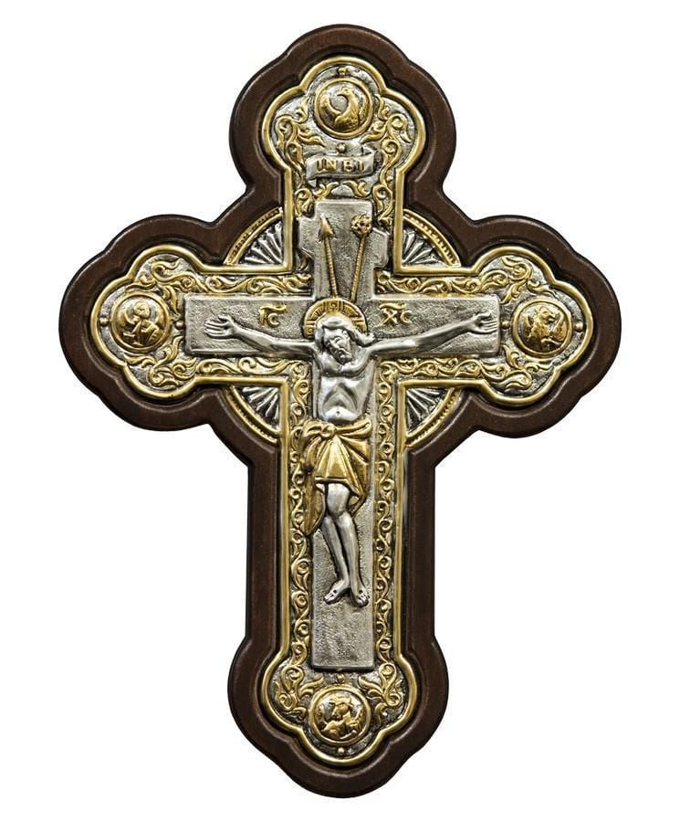 Ο Άγιος Σταυρός είναι ένα ιερό και διαχρονικό σύμβολο πίστης. Κατασκευασμένος από ποιοτικό ξύλο και διακοσμημένος με ανάγλυφη ασημοεπίχρυση παράσταση της Σταύρωσης του Χριστού, εκφράζει με σεμνότητα και χάρη τη θεία αγάπη και τη θυσία του Κυρίου.