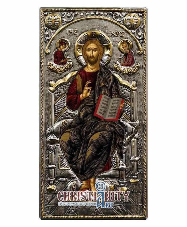 Εικόνα φιλοτεχνημένη σε καμβά πάνω σε ξύλο, με ασημένια επικάλυψη και τοπικά επιχρυσώματα. Η εικόνα συνοδεύεται από δωρεάν βάση στήριξης.