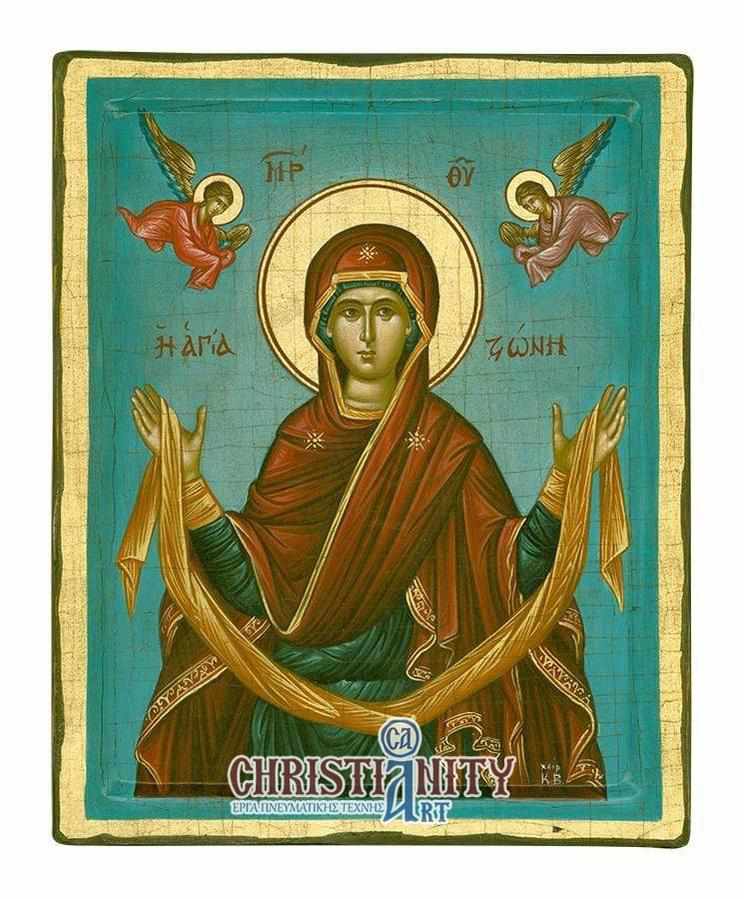 Εικόνα χειροποίητη, φιλοτεχνημένη σε καμβά πάνω σε ξύλο με τη μέθοδο της βυζαντινής αγιογραφίας, με φόντο χρυσού.